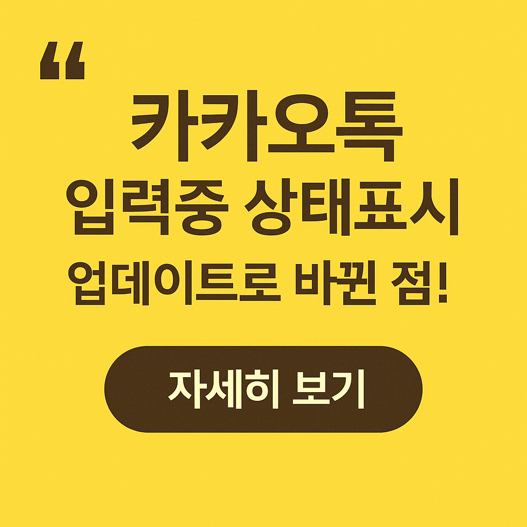 카카오톡에서 새롭게 도입된 “메시지 입력중 상태표시” 기능, 들어보셨나요? 상대방이 채팅방에서 메시지를 입력하고 있는 중이라면, 화면 상단에 “입력 중...”이라는 상태표시가 뜨는 기능입니다. 텔레그램, 왓츠앱 등에서는 익숙했던 기능이 이제 카카오톡에도 적용된 건데요, 이번 포스팅에서는 이 기능을 켜고 끄는 법을 포함해 모든 설정 방법을 정리해드립니다.